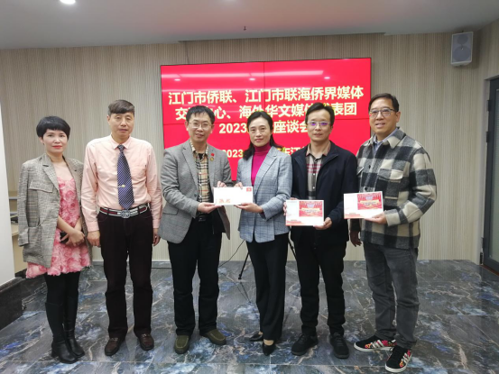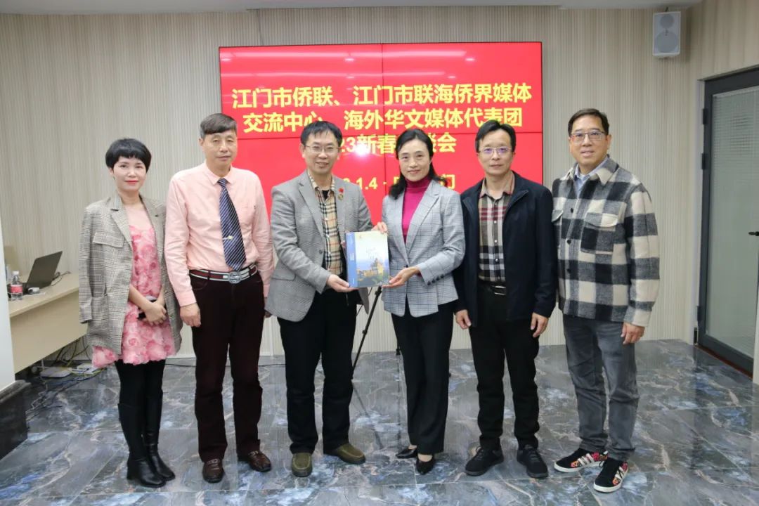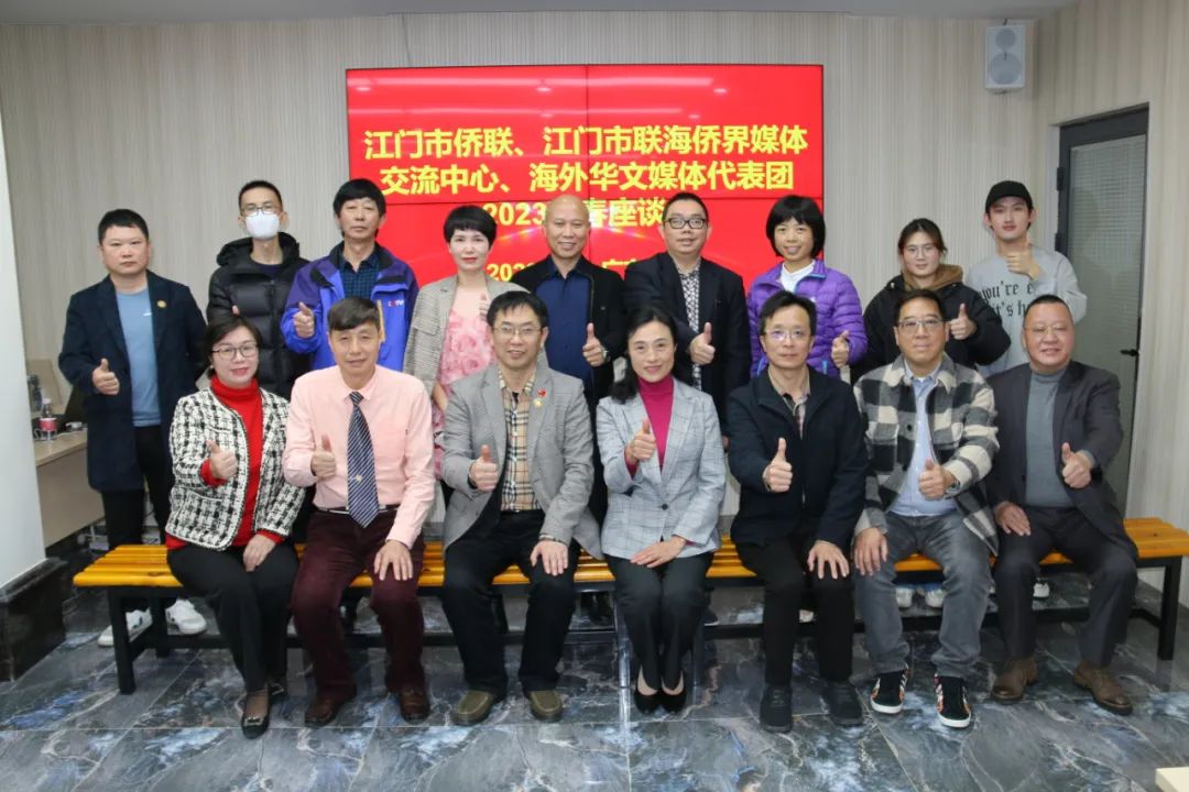 1月4日,加拿大、日本、韩国、香港、澳门等国家和地区10家华文媒体的社长、总编辑组成海外华文媒体代表团莅临江门市采风考察。江门市侨联、江门市联海侨界媒体交流中心联合举办海外华文媒体代表团2023新春座谈会暨“海内海外携手,讲好江门故事”学术沙龙,邀请一班海外华文媒体名家大咖一起为江门市外宣工作建言献策、奉献“金点子”。江门市侨联主席林春晖、副主席郑文辉等出席座谈会。