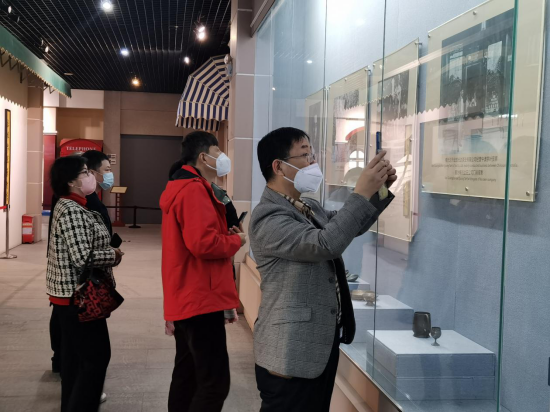 图为海外华文媒体代表团参观江门五邑华侨华人博物馆