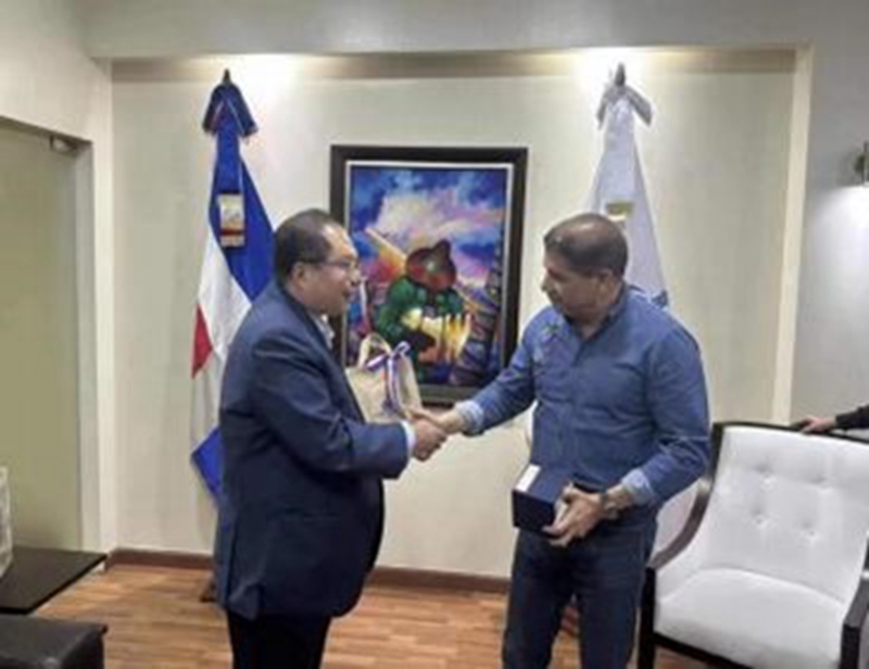 欧亚通讯社电(记者 耿玲)当地时间 5 月 19 日,中国社会经济文化交流协会副会长、亚太交流 与合作基金会执行副主席肖武男及石家庄制药集团副总李田为等一行,应多米尼加政府和多家机构邀请出访了圣多明哥及圣地亚哥,就如何推动中国与多米尼加之间更高层次的合作等议题进行广泛和建设性的交流,取得丰富的访问成果。
