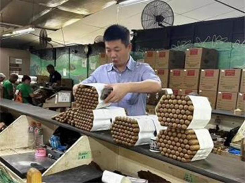 柬埔寨侨领刘忍参观雪茄的制作过程