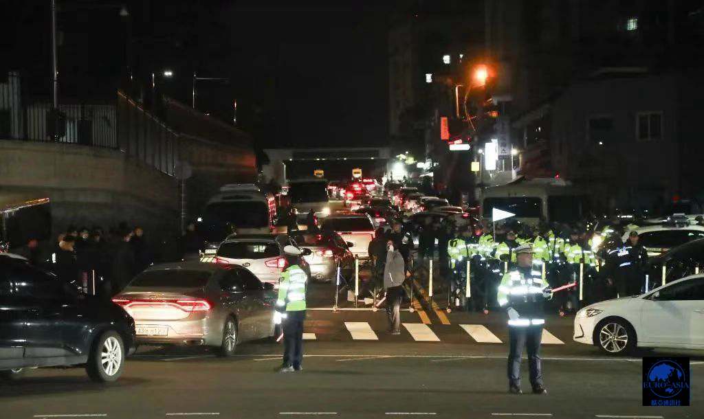 12月4日凌晨,警察在韩国首尔的韩国总统府外戒备。
