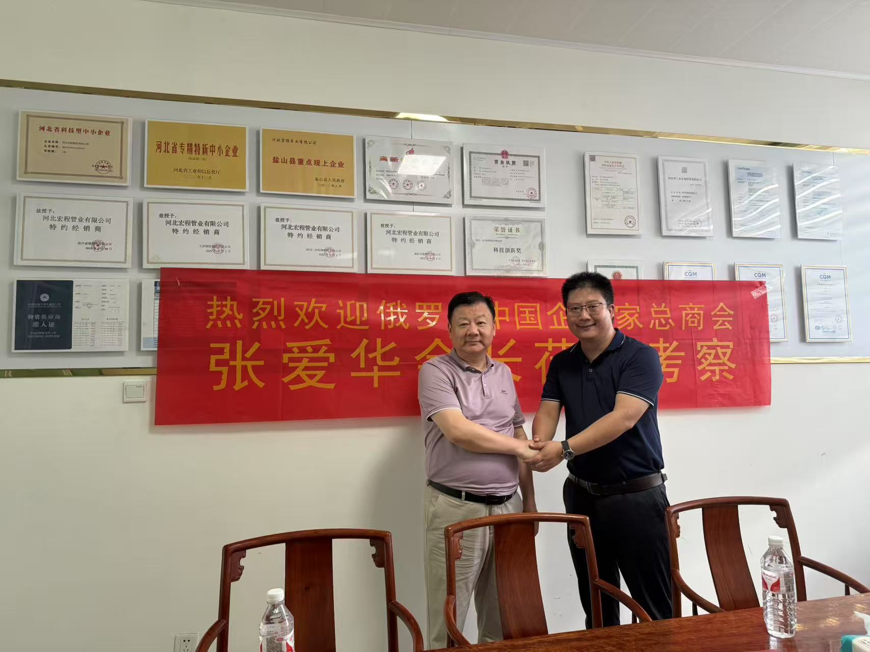 欧亚通讯社莫斯科电:5月26日俄罗斯中国企业家总商会执行会长张爱华,到河北省沧州市钢材管道生产基地参观考察。