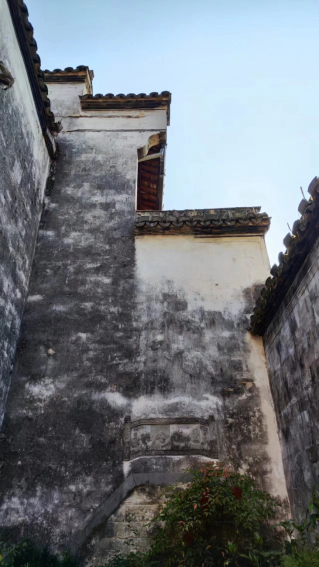 岁月冲蚀的印迹使墙壁白中带有灰黑,深深浅浅,显露出浓重的历史感!而灰瓦的屋顶像极了白壁的勾边,它们共同构成徽派建筑之美。
