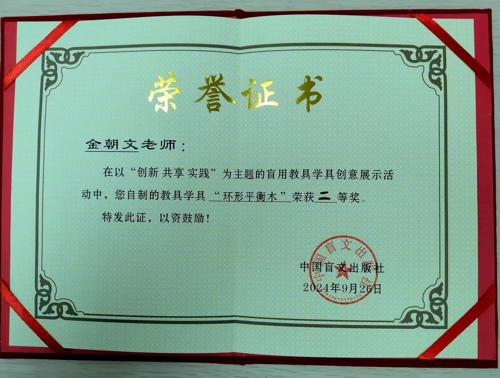 欧亚通讯社电:(文/李扬)以“创新、共享、实践”为主题的第六届全国盲用教具学具创意展示与交流活动,近日在北京成功举办。来自大连盲聋学校的4位老师分获2个二等奖、1个三等奖,是辽宁省唯一获此奖项的特教老师。