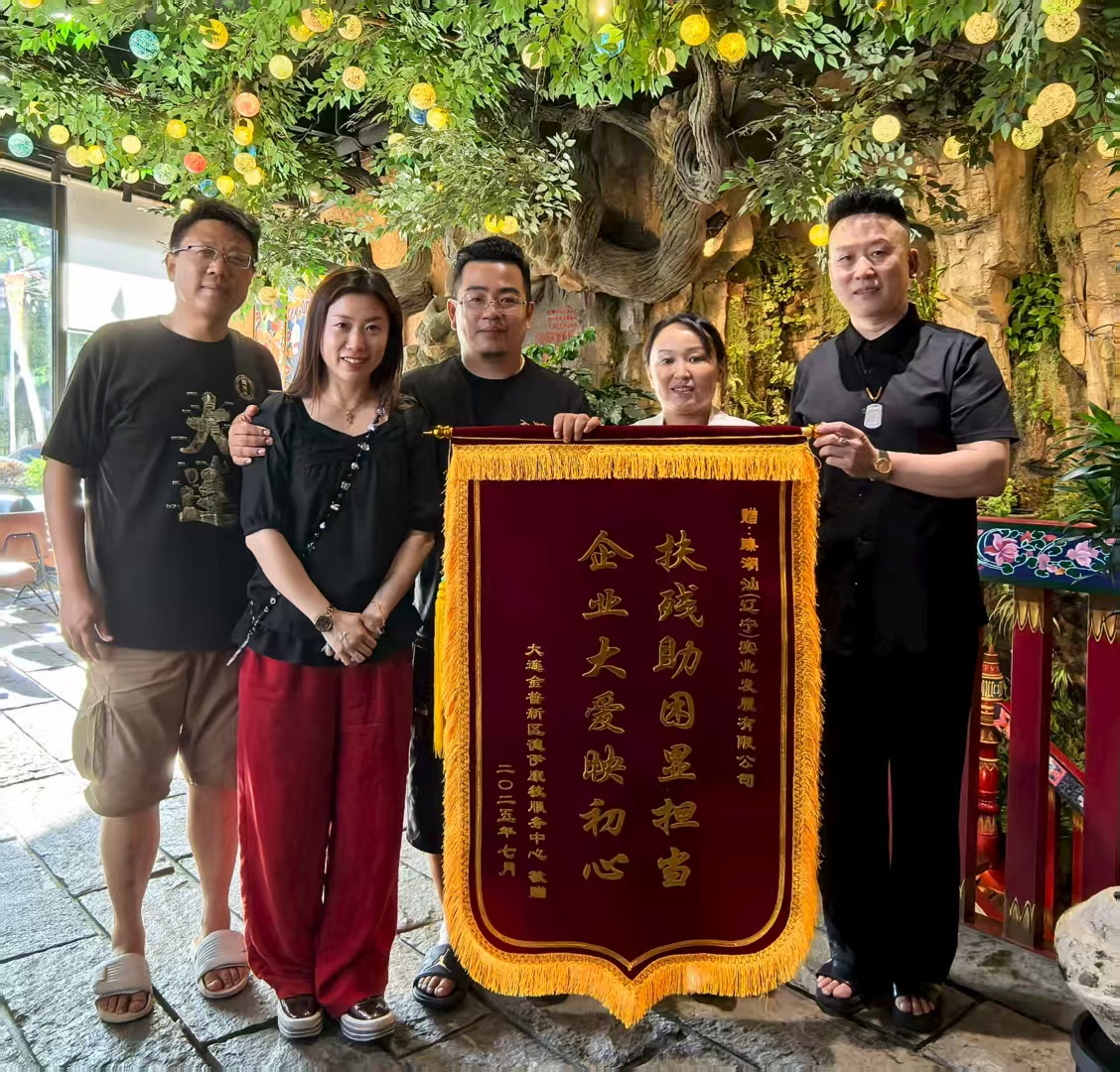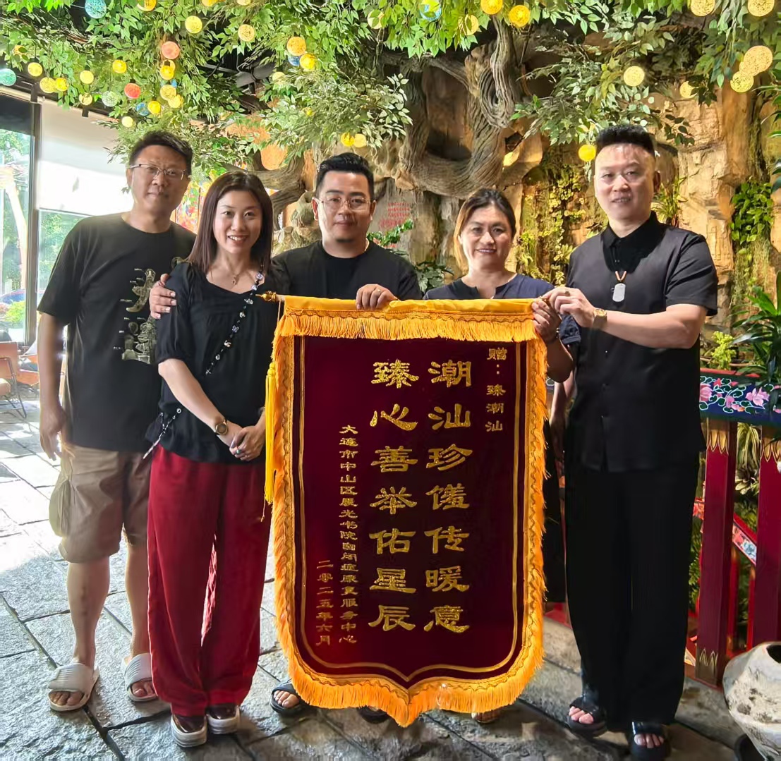 欧亚通讯社电(通讯员/李扬)7月8日下午,大连市区多家公益机构齐聚臻潮汕(辽宁)实业发展有限公司,一场特别的致谢仪式在此举行。大连市无障碍建设促进会、大连市东昕特殊儿童服务中心、大连金普新区学儿特殊教育康复中心、大连金普新区德伊康教服务中心、大连金普新区德美康教展能中心、大连中山区晨光书院孤独症康复服务中心和大连金普新区汪大姐爱心养老院的负责人,共同将饱含敬意的锦旗与鸣谢证书送到董事长林泽鑫手中。现场的掌声里,满是跨越时光的感动。