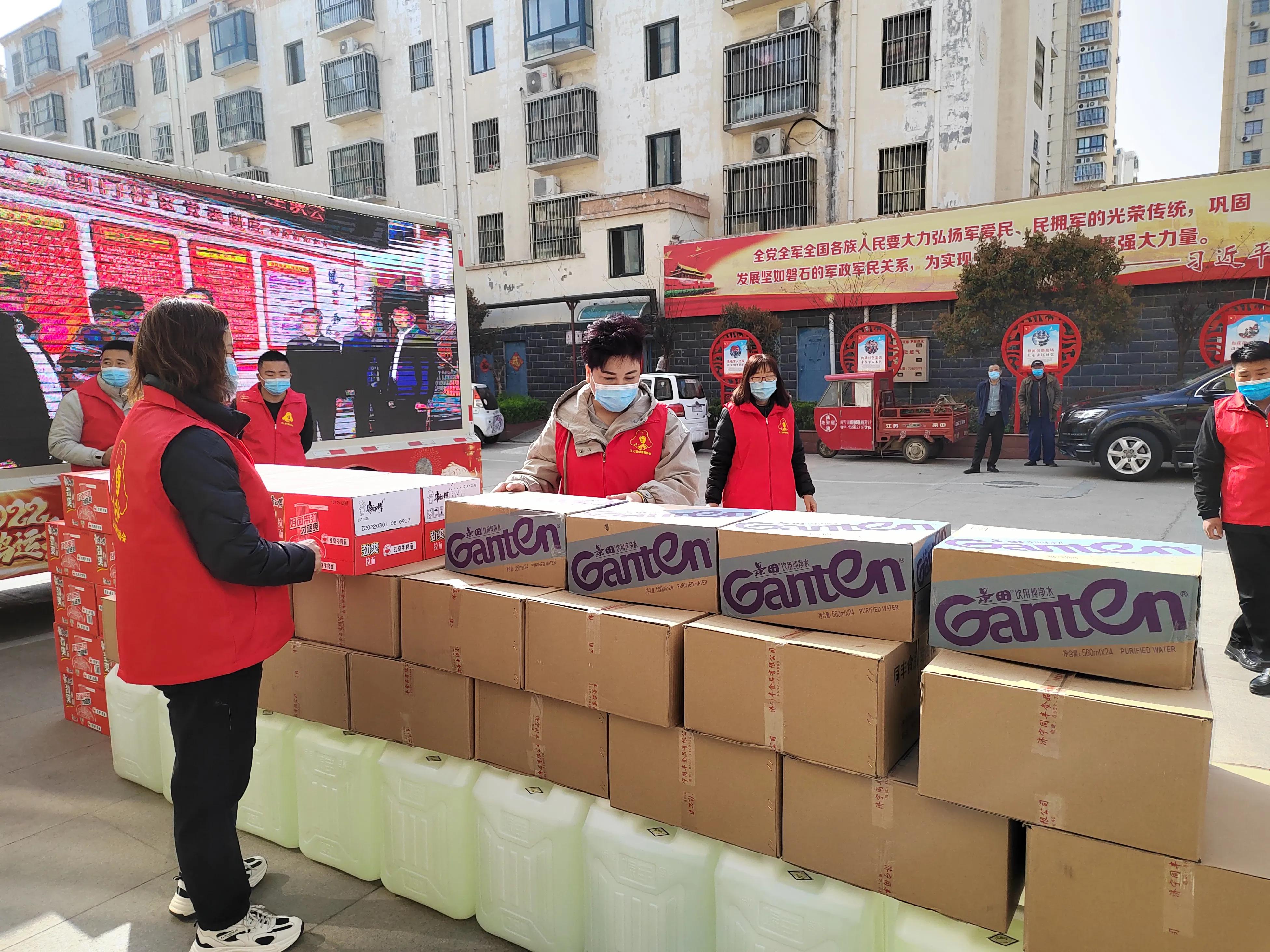 为中都街道永续社区捐赠防疫物资84消毒液(50斤)20桶,矿泉水15箱,面包15箱,方便面15箱。街道党工委副书记孔呈,党工委副书记、下派工作队队长张志玉等参加活动。