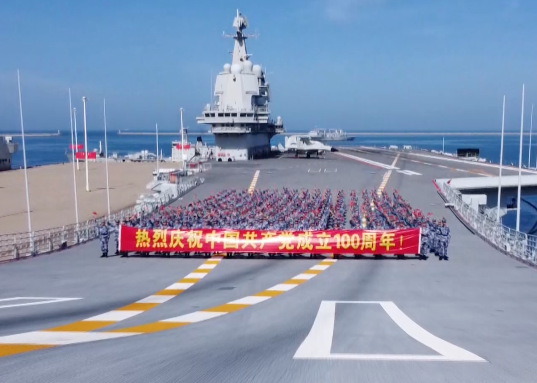 2021年7月1日是党的百年生日,山东舰全体官兵在战位上向党表白!“党旗所指军旗所向!我们在山东舰为祖国站岗,请党和人民放心!”