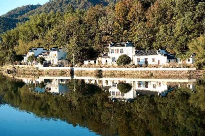 青龙湾是国家大型水利工程港口湾水库形成的人工湖泊,蓄水9.41亿立方米,集山景、水景和人文景观为一体,有着罕见的纯净水质、绝佳的原生态环境、独特的徽文化底蕴和丰富的山水、茶、竹等资源,是具有典型江南特色的山地、湖泊兼具型旅游度假胜地。