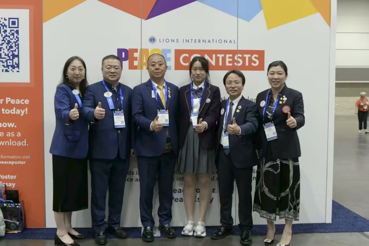 会议期间,在国际狮子会年会现场还进行了世界和平海报签售活动,大连代表处的狮友们与全球狮友共同分享着来自中国大连王姝雯同学“全球总冠军”的优秀作品《和平无止境》。