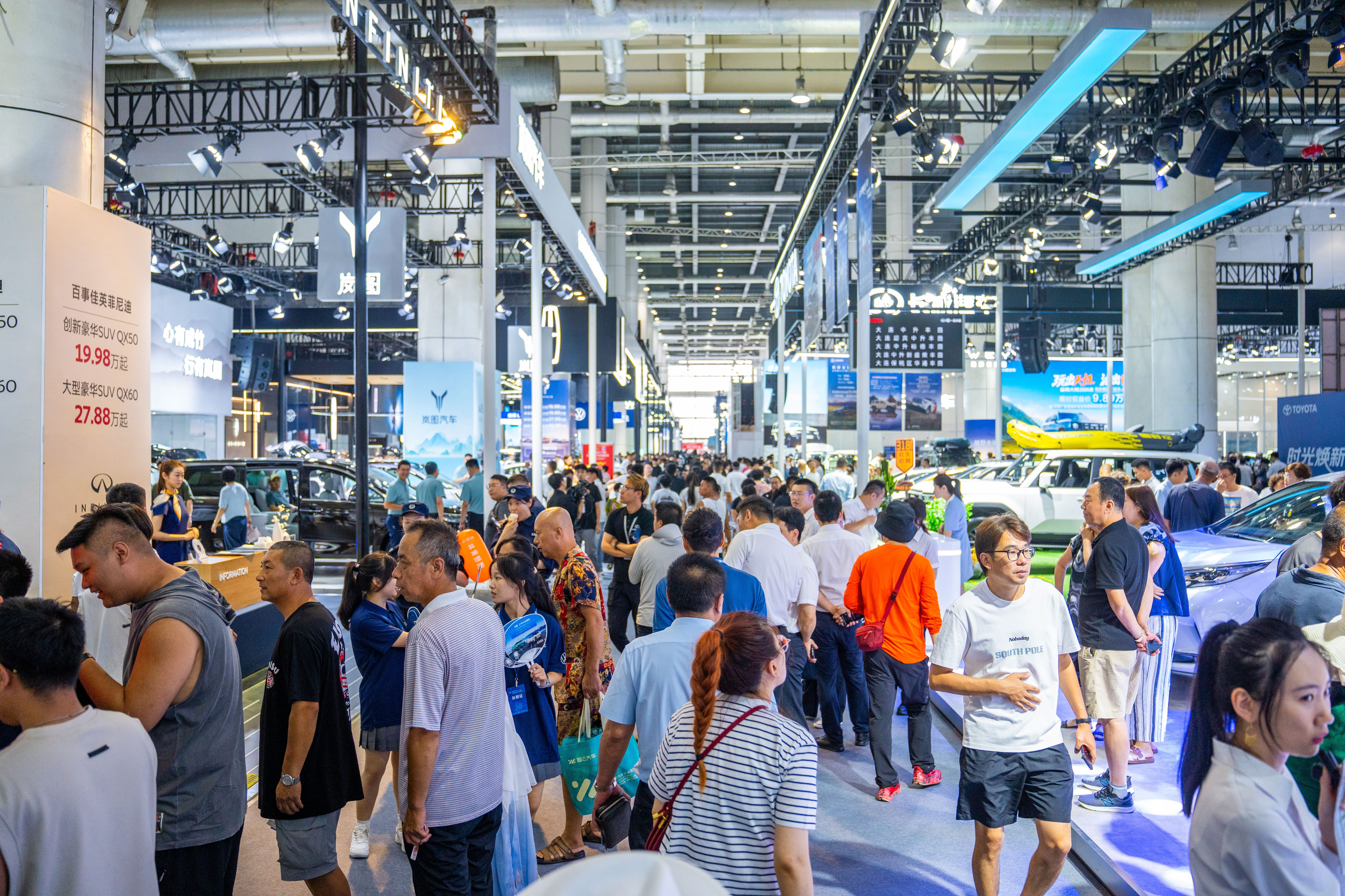 2.规模场景宏大,众多品牌集中亮相。在汽车行业和汽车市场深度变化、挑战严峻情况下,本届大连汽车展表现出强大的号召力、凝聚力,展会规模和参展品牌依然保持往届水平。红旗、上汽、一汽、东风、广汽、长安、北汽、长城、吉利、奇瑞等国内主流汽车厂商携旗下品牌全面参展;雷克萨斯、沃尔沃、凯迪拉克、林肯、英菲尼迪等国际豪华品牌、顶级名车皆将盛装展示;比亚迪、腾势、方程豹、蔚来、理想、小鹏、岚图、智己、极氪、零跑、深蓝、银河、星途、别克、日产、传祺等市场热销品牌;问界、长安启源、阿维塔、极狐、icar等5个品牌首次登录大连车展,带来新智能的全新体验。