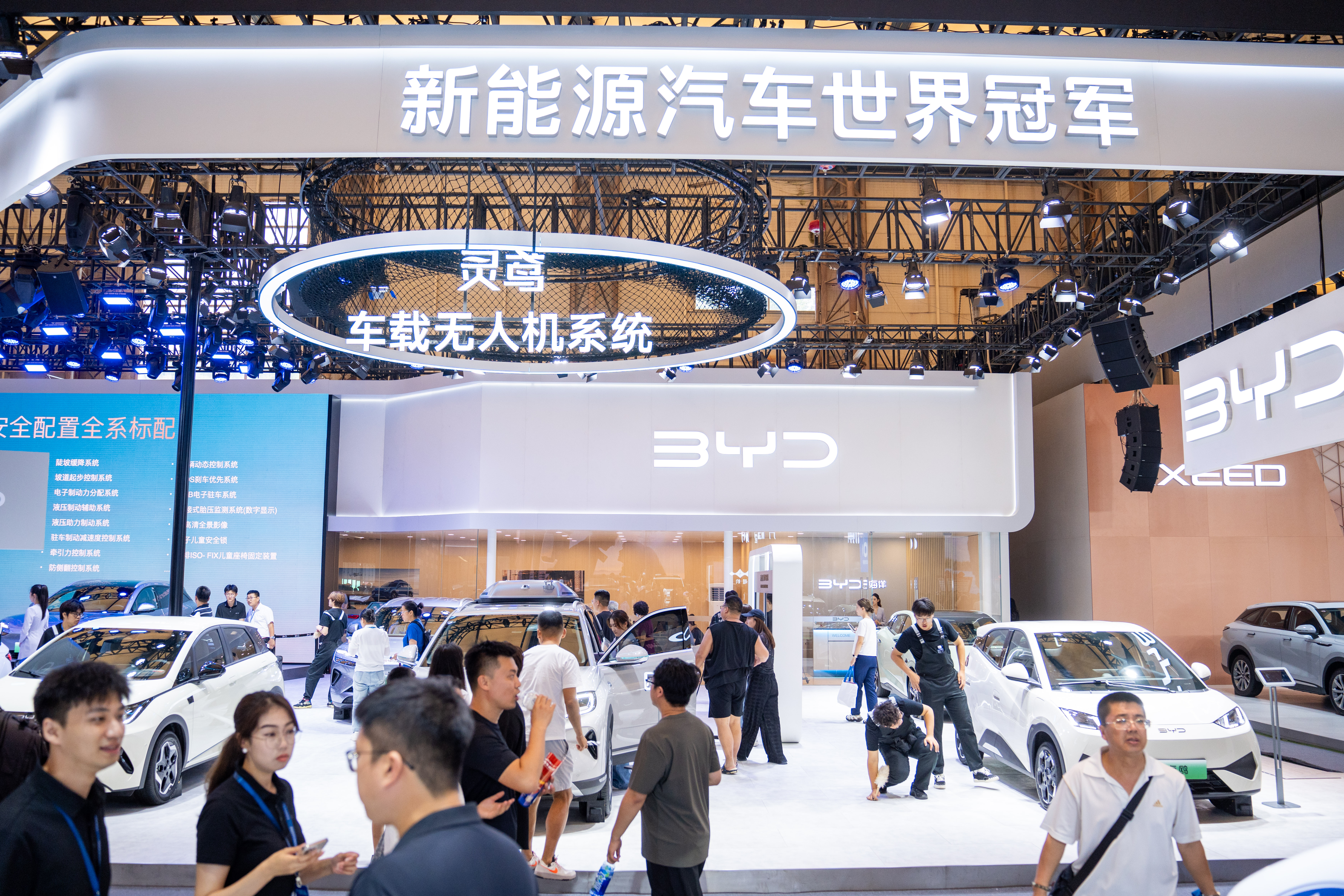 7.汇聚汽车文化,深度体验动态观展。本届汽车展即是新汽车、新科技的集中展示,更是一场汽车文化的盛宴。展台上即有新车展示,还有车模演艺,即有新能源技术展示,也有前卫汽车设计等汽车文化表现。本届汽车展还将突破静态观览,打造深度参与的沉浸式体验新场景。以比亚迪智能化为代表的智驾体验区,带来零距离感受极速充电、多场景泊车、车载无人机系统等尖端技术的便捷与惊喜,全景呈现惬意旅居新场景,即刻开启“诗与远方”的探索之旅。