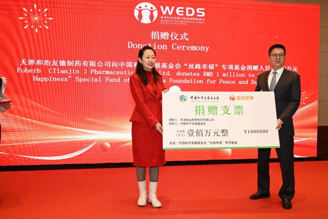 天津和治友德制药有限公司向中国和平发展基金会“丝路幸福”专项基金捐赠100万元