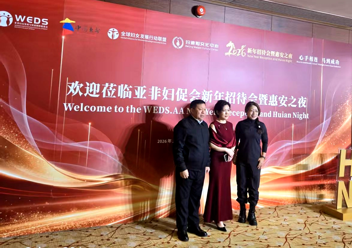 塞内加尔驻华大使对这场别开生面的新年招待会给予高度赞赏,内容丰富,非遗品牌展示、茶艺表演、惠女走秀、文艺演出引人入胜。让中外嘉宾始终沉浸在惊喜和欢声笑语之中。他强调,亚非妇促会是一个充满大爱和颇具影响力的NGO,她们开展的公益活动使成千上万的亚非妇女和儿童从中受益,让越来越多的人了解中国。她们的善举得到各界的高度赞赏。她们是促进民心相通的民间友好使者。他表示,2026年是中非“人文交流年”,中非携手在世界变局中开创机遇,在深化合作中实现共赢,一定会去开创更加美好的未来。