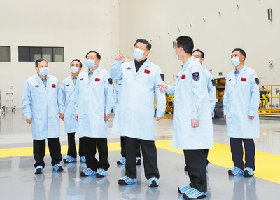 随后,习近平依次来到航天器总装测试厂房和火箭水平测试、垂直总装测试厂房,详细了解有关任务准备情况。