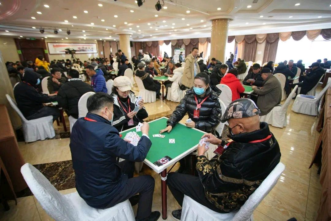 2023年由大连市体育局指导,大连市扑克竞技协会在大连星海国际金融中心举办的一场比赛,最高参赛者年龄是77岁,跨度接近了70岁,可以充分说明它的受众群体的范围之广,不分男女老少。