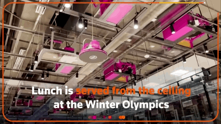 2022年1月13日,介绍了冬奥会闭环内的餐厅,许多食物由机器人厨师制作,并通过空中传送带无接触送至餐桌。