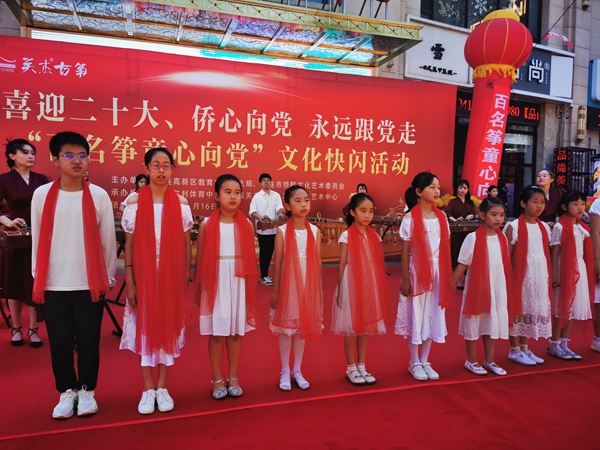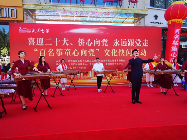 欧亚通讯社电(记者 刘呈洲)为传承和弘扬中华优秀传统文化,让中华民族的文化基因在广大青少年心中“生根发芽”,7月16日,由大连市侨联文化艺术委员会、大连高新区教育文体卫生局主办,大连亿利体育中心和大连关杰古筝清和文化艺术中心承办的“百名筝童心向党”文化快闪活动在大连高新区举行。辽宁省侨联和大连市侨联的相关领导与大连市千余位群众共同参加了活动。