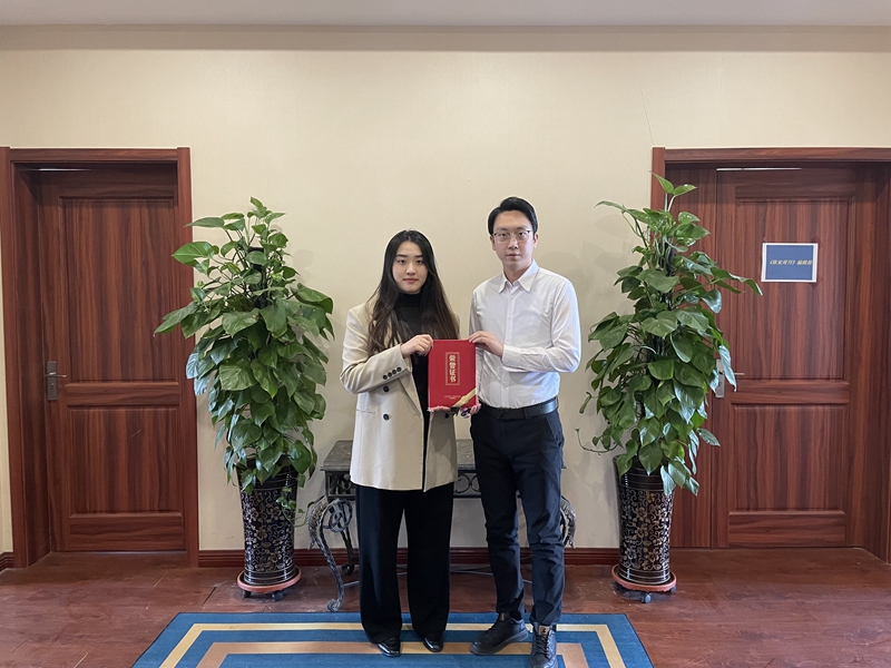 (左)周叙彤荣获《中国演艺网》2022年度优秀员工称号