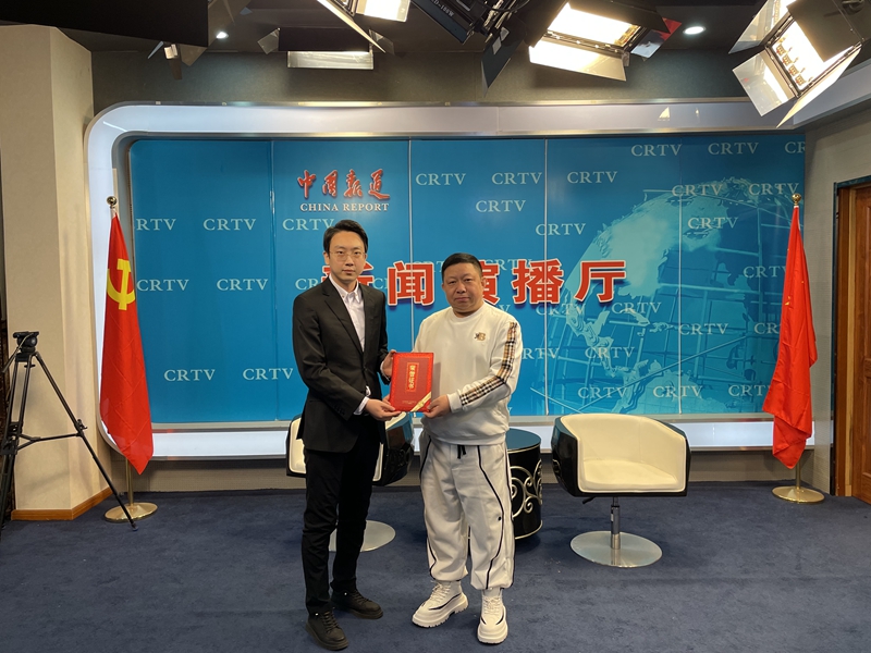 (右)中国报道《人物访谈》主编李传军(左)中国报道《人物访谈》编导王禹博