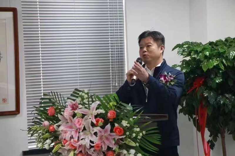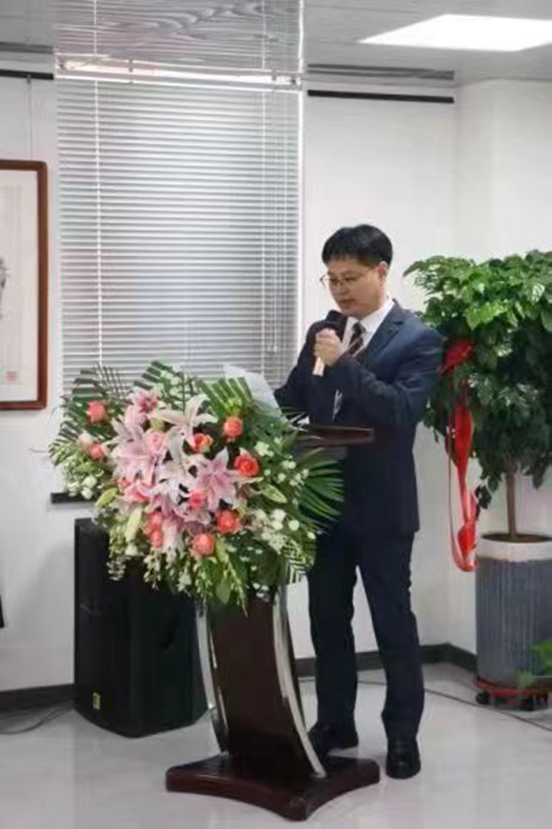 图为:辽宁省文化产业协会常务副会长党支部书记、市人大教科文卫文化小组组长、大连文化市场行业协会常务副会长、金普新区文旅产业发展协会会长、北京正阳美术馆大连分馆馆长王俊生致欢迎词介绍艺术馆情况