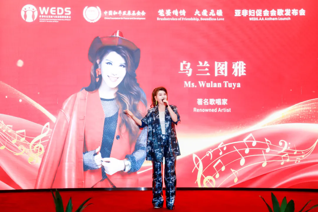 在新歌发布环节,会歌词作者分享创作心得,让《爱在亚非》的诞生故事更动人。著名歌手乌兰图雅深情演唱了会歌《爱在亚非》,歌声里饱含对亚非妇女情谊的传递、对大爱精神的弘扬,瞬间点燃现场氛围。