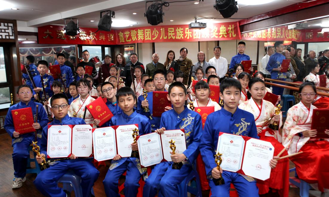 10月30日16时30分,在位于大连西岗区九邦大厦的大连鑫艺歌舞团举行了颁奖典礼,老将军、艺术家、企业家和家长们共同见证这一荣光时刻,在王团长的指挥下一首欢庆的民乐合奏喜洋洋》拉开了颁奖礼的序幕。