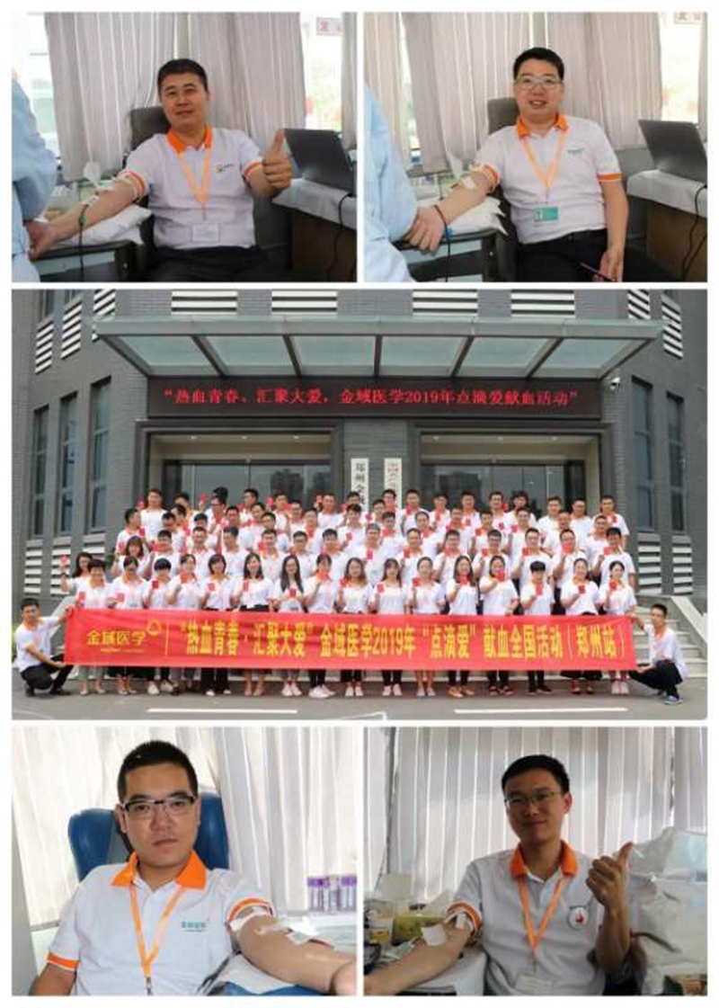 自2014年,郑州金域联合河南省红十字血液中心,每年组织开展无偿献血活动,截至目前,累计献血已达700人次,累计献血总量达203200mL,荣获河南省血液中心颁发的“无偿献血团队”及“无偿献血优秀团队”称号。