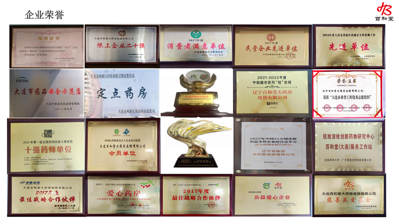 “放心买好药,就来百和堂”百和堂成立至今得到了政府部门及业界的高度认可曾先后多次被评为: