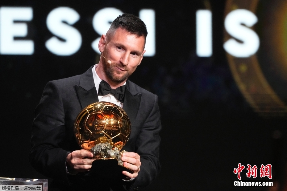 欧亚通讯社电北京时间10月31日凌晨,2023金球奖颁奖典礼在巴黎举行。阿根廷足球巨星里奥-梅西获得职业生涯第八座金球奖,刷新了由自己保持获奖数的纪录。图为梅西手握自己的第八座金球奖杯。