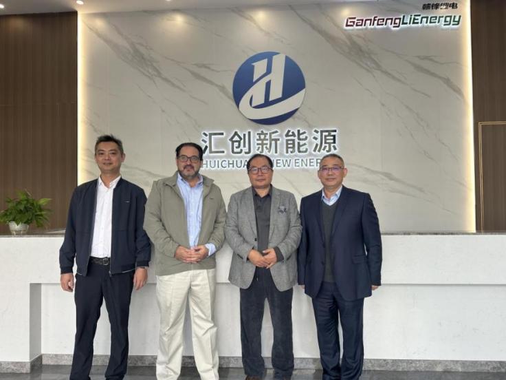 安德烈斯·雷博莱多·斯密特曼斯秘书长(左二)与肖武男执行副主席(右二)与赣锋锂电董事长戈志敏(右一)合影