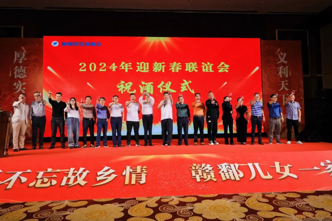 总商会会长丁飞等相关部门领导,部分在琼江西籍领导干部和离退休老干部,26家省级商会、协会和11家驻琼赣籍市县商会的会长、秘书长,部分在琼江西籍乡贤、乡友代表,以及海南省江西商会的领导班子成员和理事、会员等共290余人欢聚一堂,回顾和总结商会2023年的工作,共贺新春佳节。