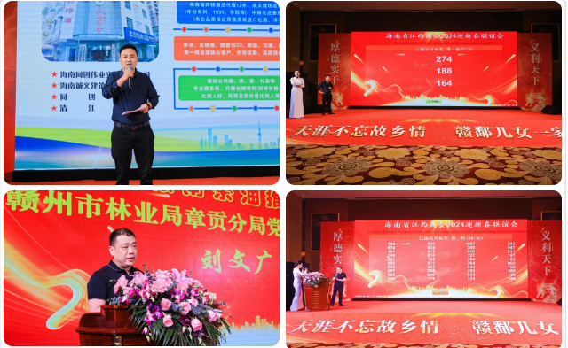 海南省江西商会会长陈斌作《2023年商会工作报告》及新年致辞。他说,过去的一年,是商会第四届理事会承上启下、继往开来的开局之年。商会全面建设迈向新阶段,综合实力实现新跨越。他表示,商会的每一分成绩、每一个收获,都得益于琼赣两省政府部门的正确领导,得益于在琼赣籍乡贤及社会各界的关心和支持,得益于广大会员的共同努力和奋斗,对大家的鼎力支持表示衷心的感谢!他还表示,2024年,商会将继续凝聚力量,以坦荡的胸怀,海纳百川的气度,继续朝着“百年商会”的目标携手奋进!