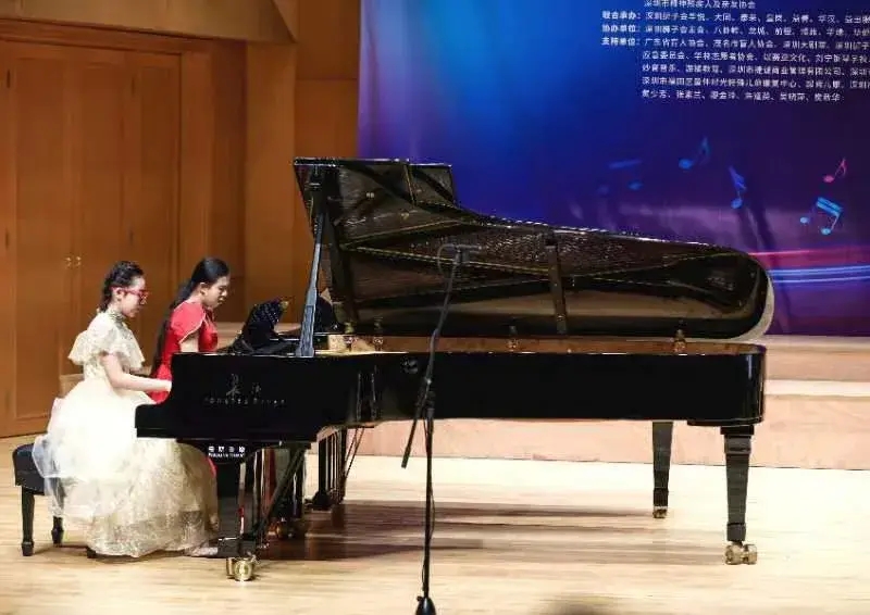 来自由大连刘宁钢琴学校培训的8位盲童,与深圳残疾儿童同台精彩演绎了自己的音乐才华,受到广泛好评。尤其是大连市的盲童除了表演钢琴四首联弹及双钢琴八首联弹之外,两位盲童还一起演奏了具有中华民族精神的钢琴协奏曲《黄河》的第二乐章《黄河颂》,更令全场观众震憾。