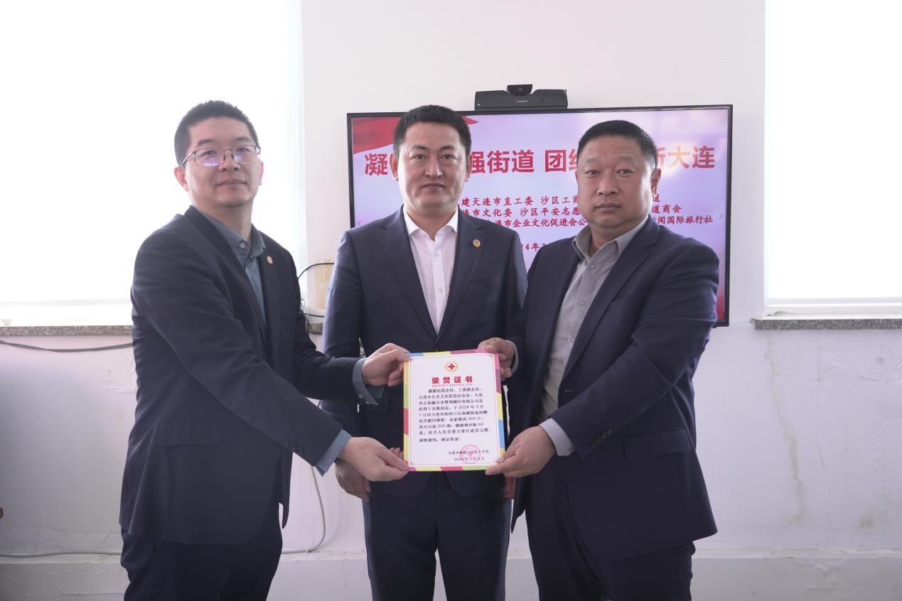 春柳街道办事处党工委书记陈守伟介绍了街道服务民生需求、支持企业发展的具体事例,2023年的指标完成情况和2024年的街道工作重点。沙区营商局局长杨晓刚介绍了沙区政务提质升级的新举措,呼吁企业家参与营商环境的建设和治理,为优化营商环境建言献策;沙区工商联主席逄博介绍了沙区的发展优势和经济潜力,鼓励企业家守正创新、先立后破。陈守伟围绕春柳街道的区位优势和经济特点与企业家们在银发经济和健康产业等方面进行了深度交流,企业家们表示要为春柳街道的群众文化生活和社区产业融合作出贡献,并与春柳街道达成多项合作意向。陈守伟向支持春柳街道经济发展和民生关切的大连民建、沙区工商联、文促会表示了衷心的感谢,热情欢迎企业家到春柳投资兴业,创建共同富裕的美好明天,并代表沙区红十字会向文促会会员、大连首正创鑫企业管理顾问有限公司总经理卜友勤颁发了捐赠赠书。