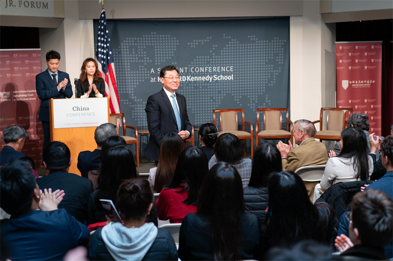 谢锋大使演讲受到与会代表和哈佛师生热烈欢迎,现场嘉宾多次报以长时间掌声。