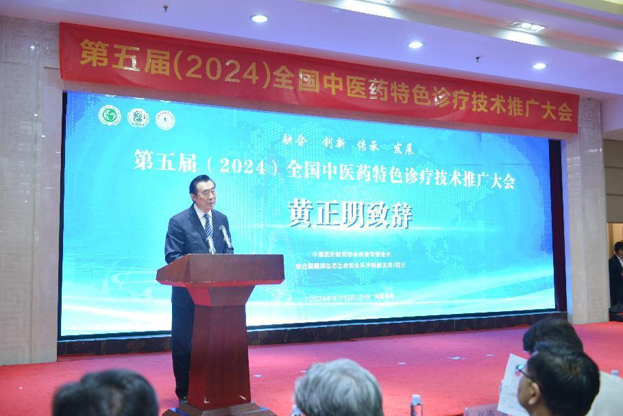 中国医药教育协会终身荣誉会长、联合国国际生态生命安全科学院副主席黄正明院士在讲话中指出,特色诊疗技术是中医药的核心竞争力之一,它凝聚了历代中医药人的智慧和心血。通过推广这些技术,可以让更多的人了解中医药、认识中医药、受益于中医药。全国中医药特色诊疗技术推广大会是中国医药教育协会精心打造的品牌盛会,在中医药领域很有影响力和吸引力。前四届大会对整个中医药事业的发展起到了积极的推动作用,不仅受到了社会各界的广泛关注,还提升了民众对中医药的认知度和信任度,为中医药在新时代的发展营造了良好的氛围。同时,他又从中医药特色诊疗技术的挖掘整理、传承创新、人才培养等三个方面提出了新的希望和要求。