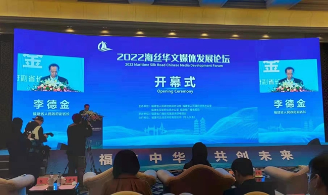 福建省人民政府副省长李德金致辞表示:2022海丝华文媒体发展论坛以“福佑中华 共创未来”为主题,全方位多角度展现新发展阶段福建建设成果,展示福建“福”文化,努力推动海丝沿线国家和地区交流合作走实走深。希望华文媒体朋友们把握机遇,讲好中国故事;开拓创新,推进媒体转型;以侨为桥,促进互联互通。